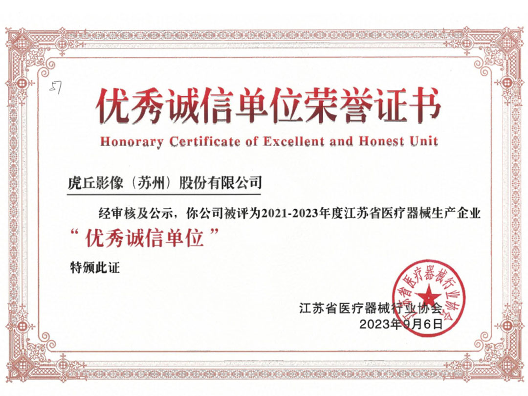 近日,虎丘影像再次獲得江蘇省醫(yī)療器械行業(yè)協(xié)會評選的“優(yōu)秀誠信…